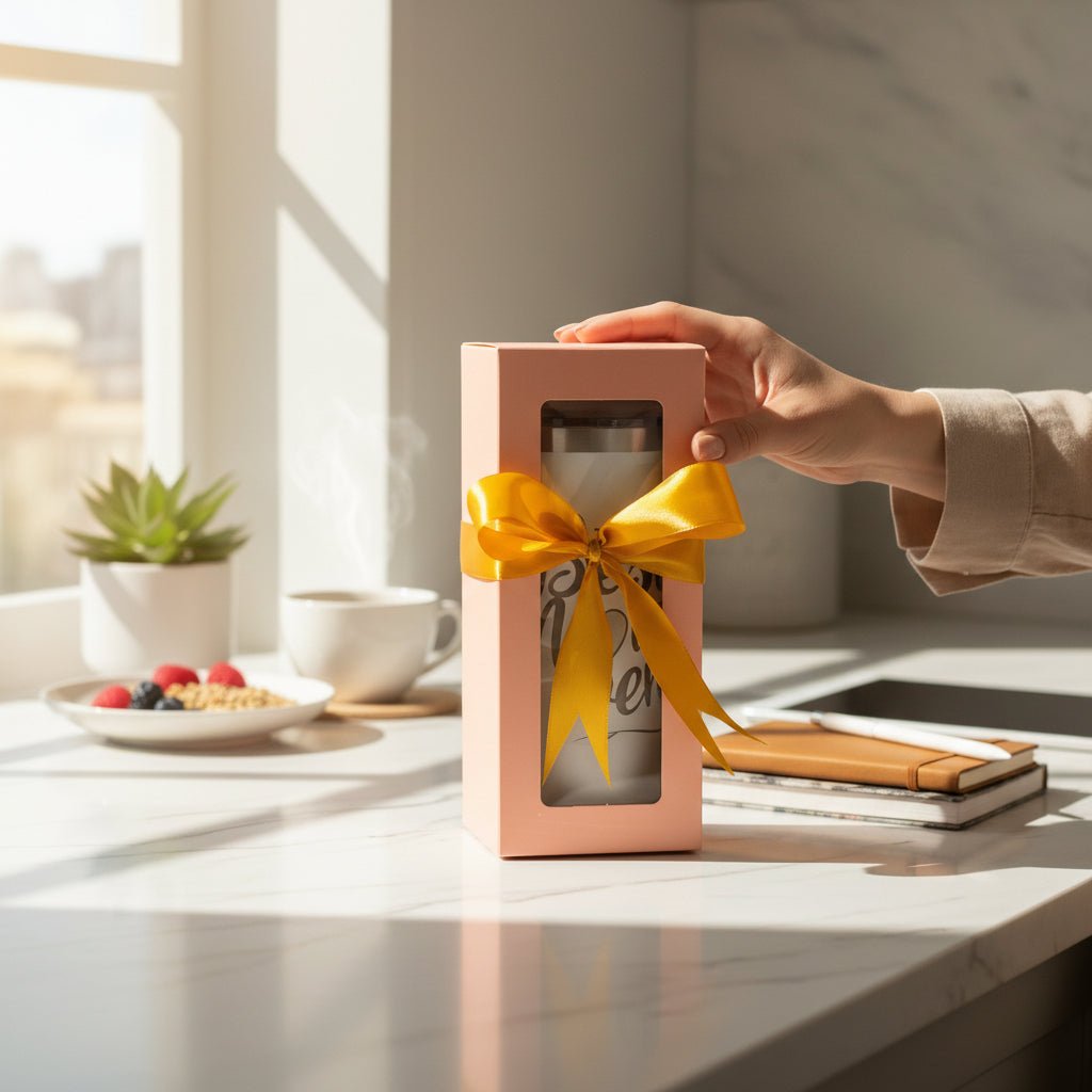 Designed with double-wall insulation and a heartfelt festive message, this tumbler keeps drinks hot or cold for hours. It arrives beautifully packaged in an elegant gift box with ribbon, making it ready to give the moment it arrives.